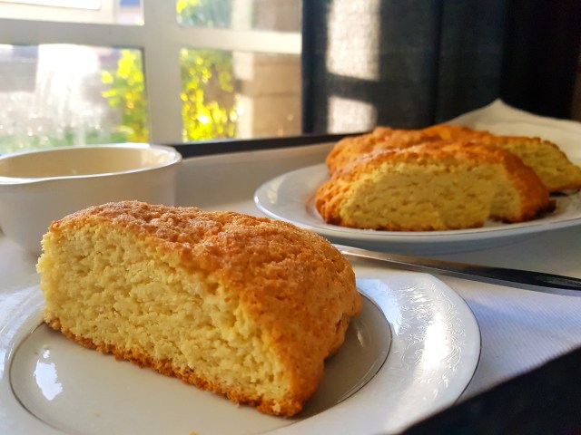 Snowflake flour scone premix with a Naturasugars twist. Simply prepare the pre mix as directed on the package but substitute the oil for melted butter. Place the dough on a baking tray and sprinkles with cinnamon sugar (Naturasugars golden castor sugar + Robertsons spice cinnamon powder). The result is scone thats buttery on the inside and deliciously sweet and crunchy on the outside. The cinnamon is an absolute flavour bomb