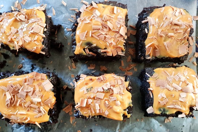 I used the best chocolate cake ever! Recipe. Smothered on some Nestle Caramel treat and chocolate shavings giving it that rustic homemade charm.