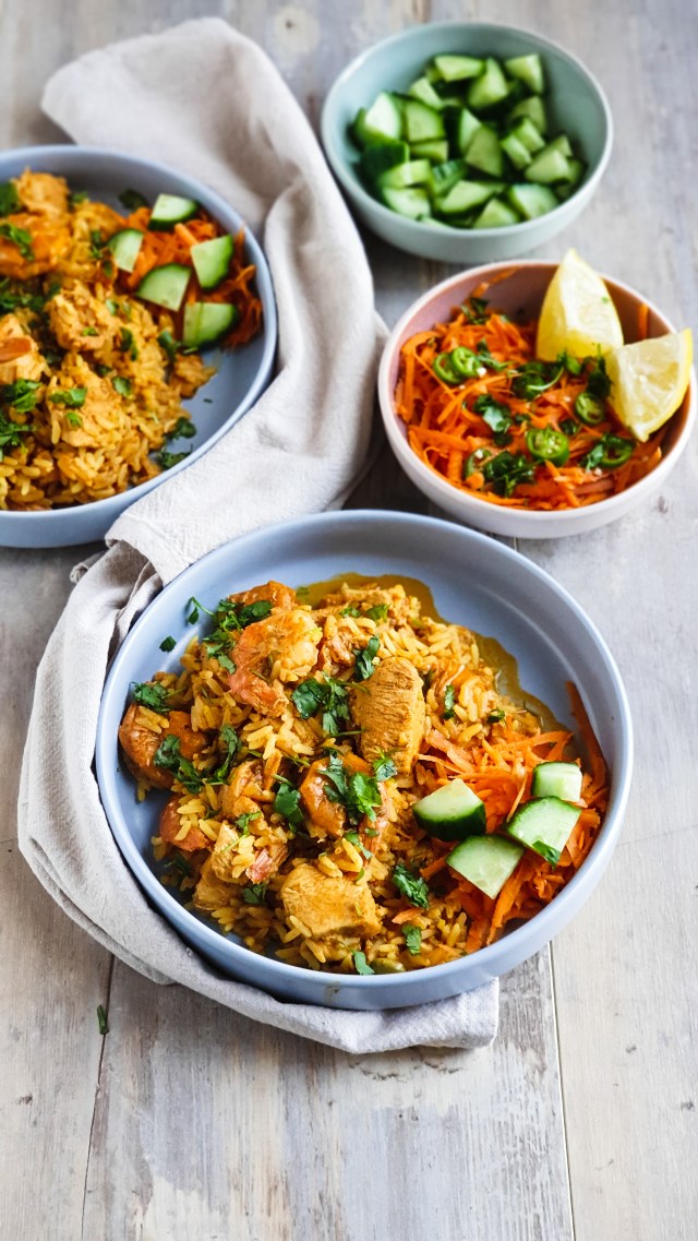 Layer the rice over the chicken and prawn curry sauce and bake in a preheated ocen at 180°C for 25-30 minutes.