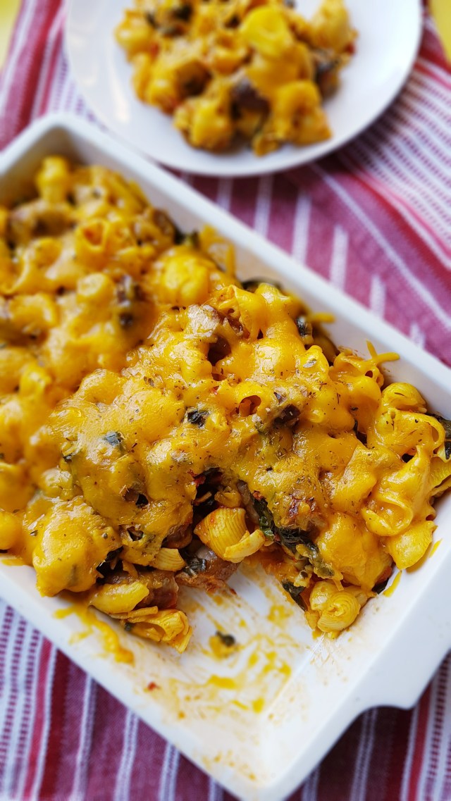 An amazing pasta bake with boerwors, spinach, fresh tomatoes and gooey cheddar cheese 😍. So delicious.
