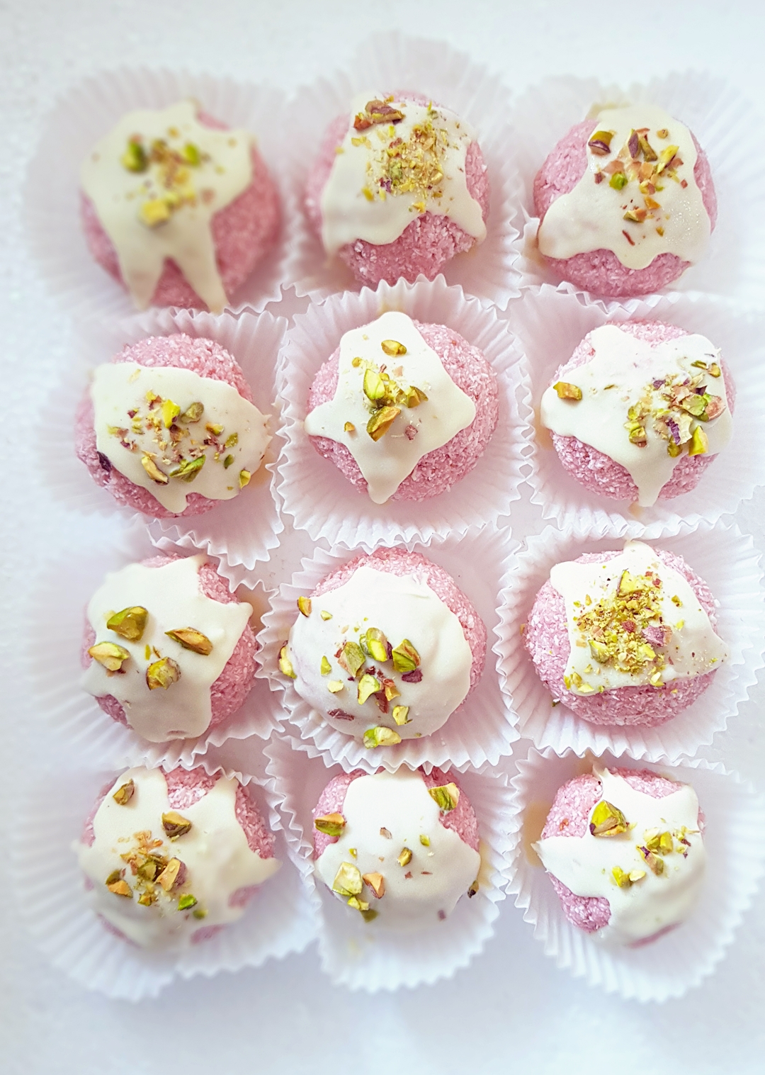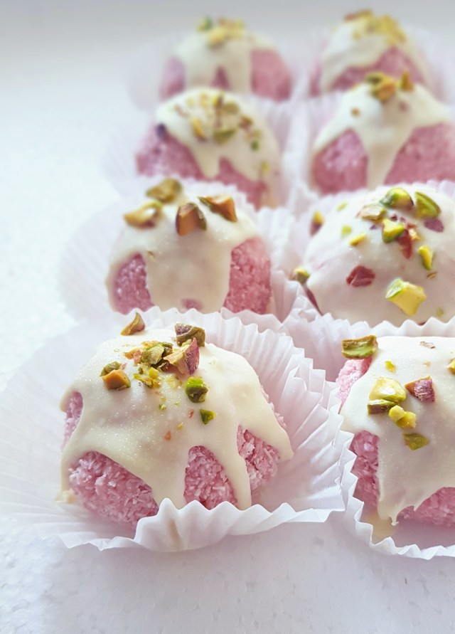 This year I decided to make something a bit different, adding actual flavour to the mixture and leaving out the food colouring. What better than raspberries and pomegranate preserves and some white chocolate to take this humble treat to the next level.