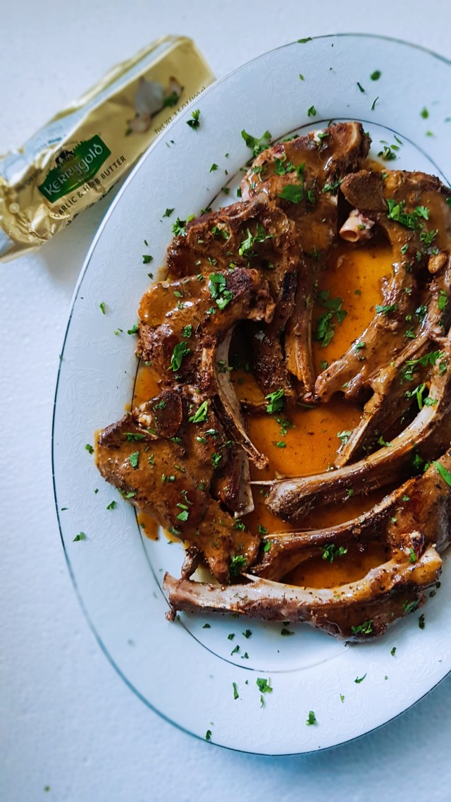Lamb chops are my go to for a quick dinner. I was inspired by the Food Network’s the Kitchen into making my own pan sauce (something I’ve never attempted before). I used homemade chicken stock, rosemary and Kerrygold herb and garlic butter for some next level richness and flavor.