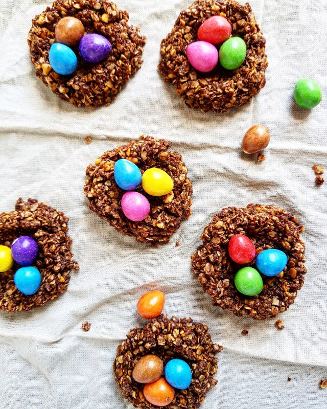 I can’t believe it’s almost Easter, where has the time gone? I have a delectable spread all planned that I’ll be sharing leading up to Easter. There is something for everyone, appetizers, dessert, hot cross buns, and these yummy healthy no bake nest cookies.
