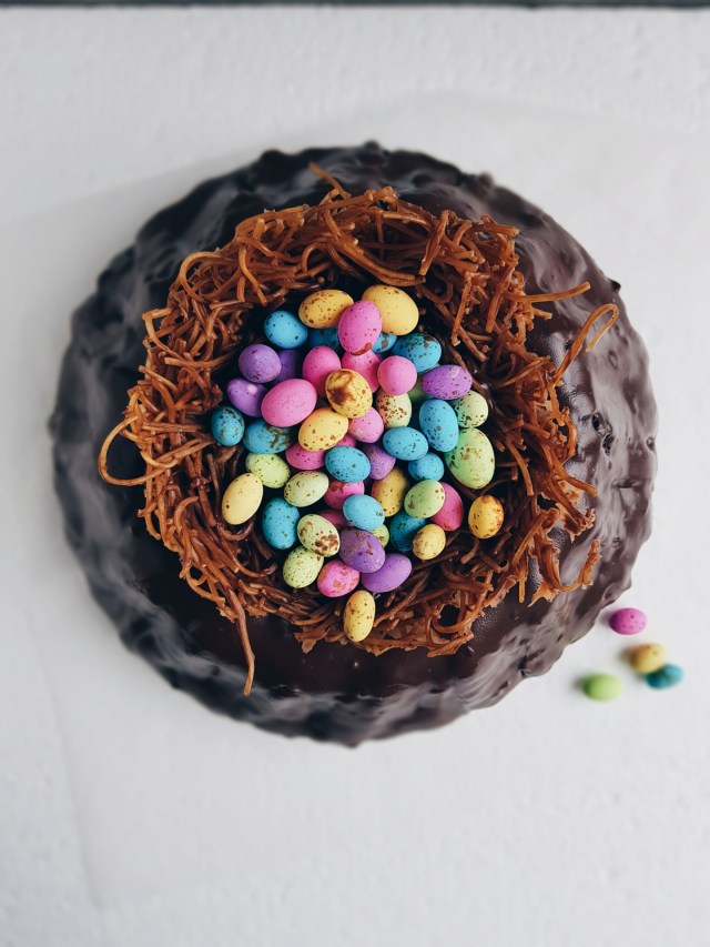 Nothing beats a good old homemade chocolate cake, this has got to be the best and simplest chocolate cakes I’ve ever made, it was so incredibly moist and even more decadent when doused with chocolate ganache. Going along with the Easter theme I decided on making a nest from vermicelli noodles and topping them with chocolate eggs. You seriously have to try this!!