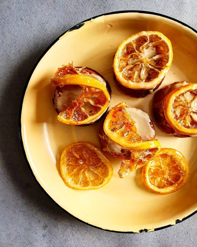 I whipped up what I’d like to call the best vanilla cake ever ever tasted, a gorgeous lemon icing glaze and homemade candied lemon slices to decorate them with.