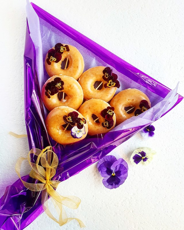 These doughnuts are pure perfection paired with a glaze and edible flowers.