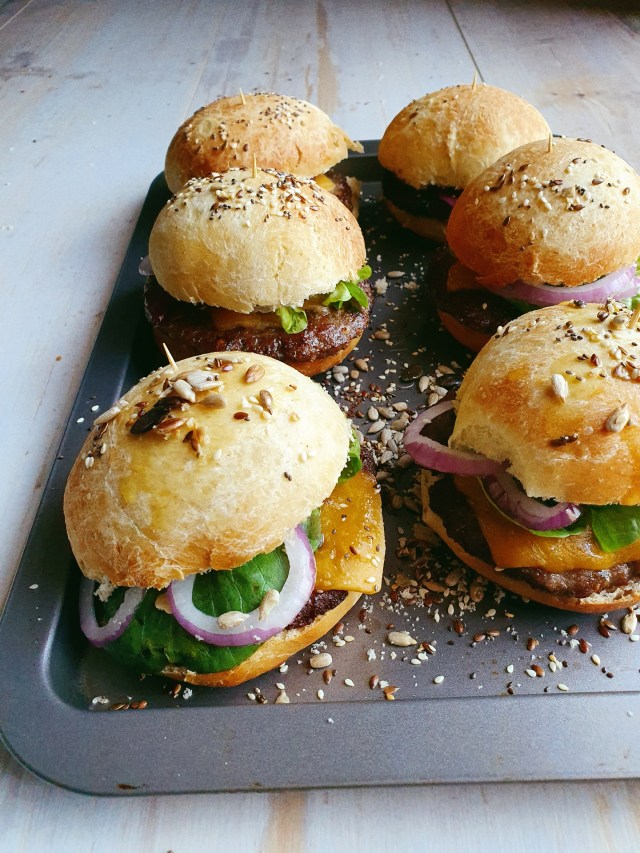 This recipe yields 8 burger buns, I topped mine with mixed seeds but you could use anything you have on hand or just brush them with butter they taste fantastic either way.