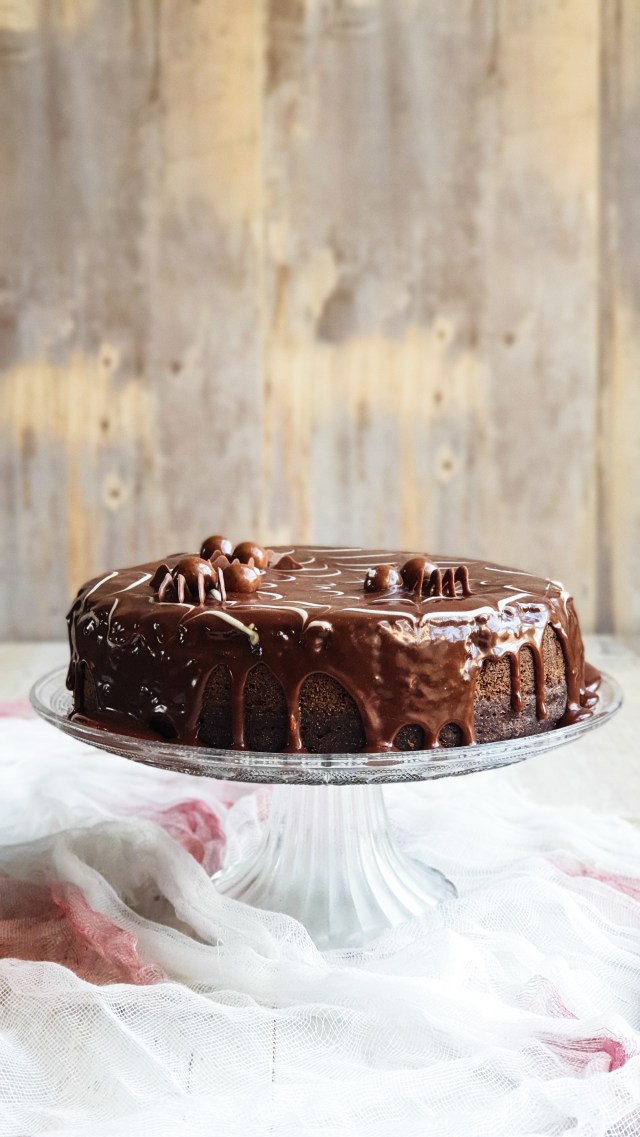 This recipe yields 2 round cakes or if you’re feeling spontaneous bake the batter in a sheet pan!I drenched this cake in, yes you’ve guessed it! More chocolate (YUM!!!).