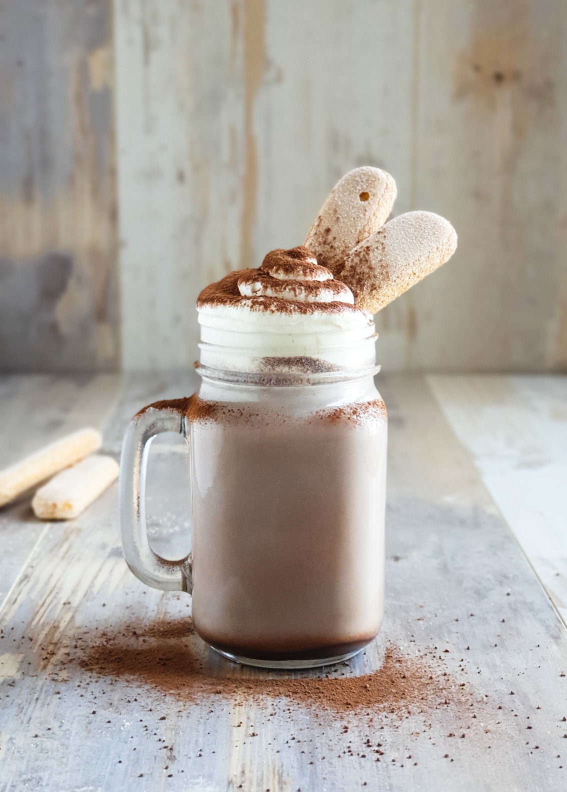 Today I’m sharing a delicious tiramisu hot chocolate. This has expresso, chocolate, marscapone and lady fingers. If you’re having a bad day/week this will surely help raise your spirits.