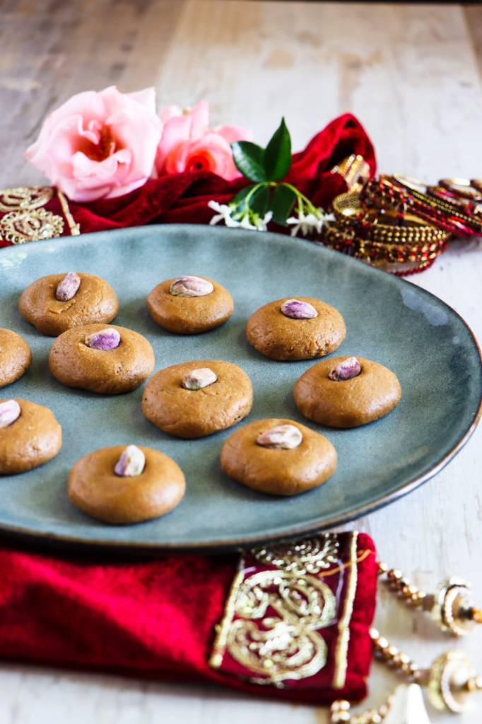 Peda is an Indian sweet, it’s soft and rich and delicious! As much as I love Indian sweets I sometimes find them way too sweet, hence the dulce de leche, this addition gives it a lovely balance – which means you and I can eat more.