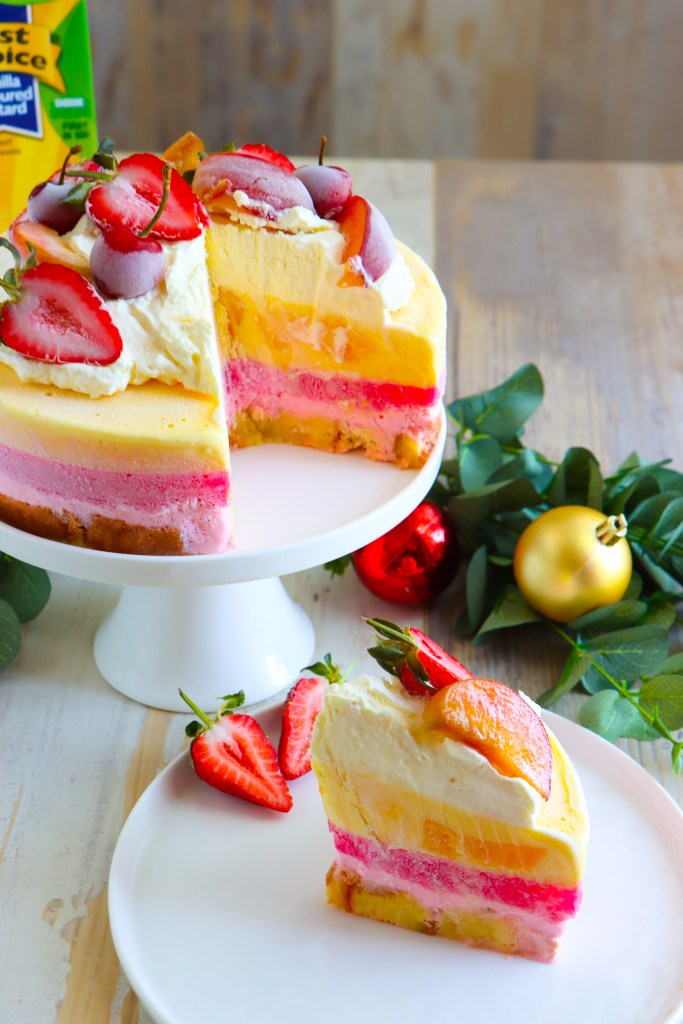 8 Once the trifle cake has set, run the sides of the springform pan under hot water for 10 seconds then remove the cake from the cake tin.