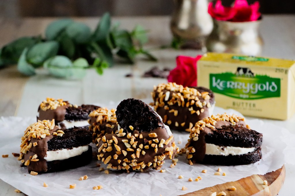 Pipe the mousse onto one half of the brownie, and sandwich with the other half.