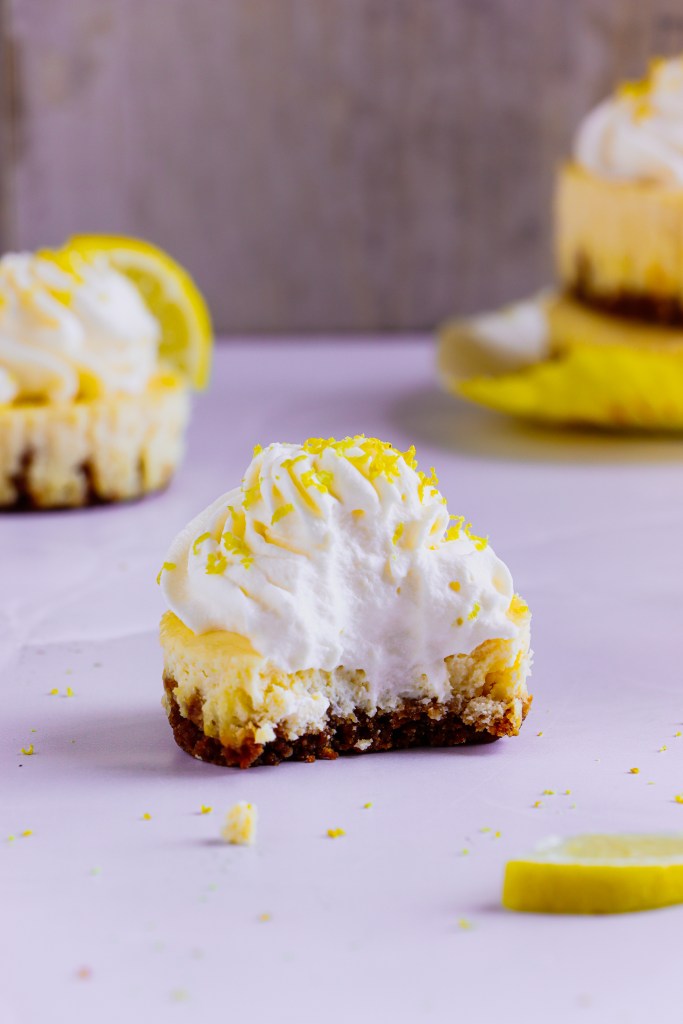 This recipe makes the perfect base, I topped mine with lemon zest and sweetened whipped cream. Let your imagination run wild by topping the cheesecakes with salted caramel, cookie butter, Nutella, or whatever your heart desires!