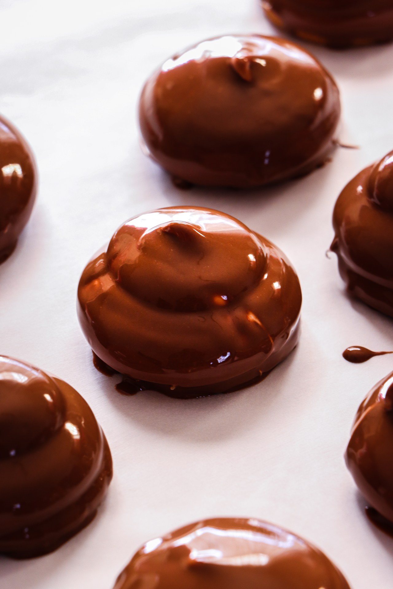 Allow the chocolate to cool slightly before pouring it onto the marshmallow.