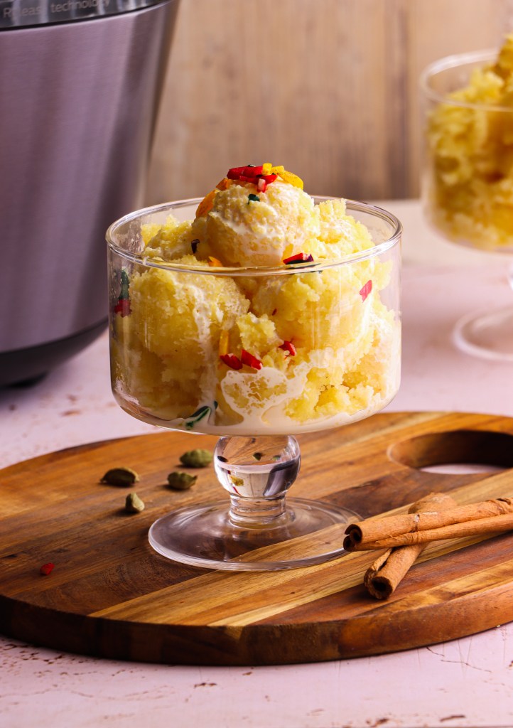 Select the saute button (30 minutes). Add butter and semolina, and saute for 15 minutes until the butter has absorbed and the semolina is toasted.