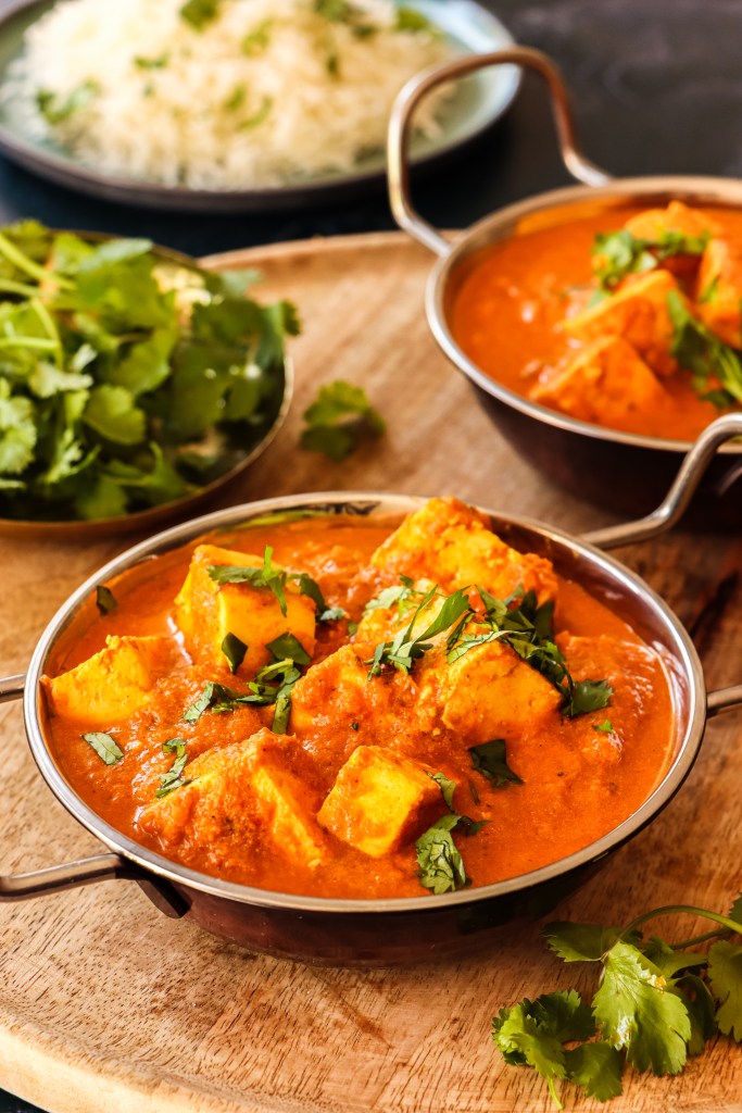 Garnish with fresh coriander and serve with basmati rice or naan. Enjoy!