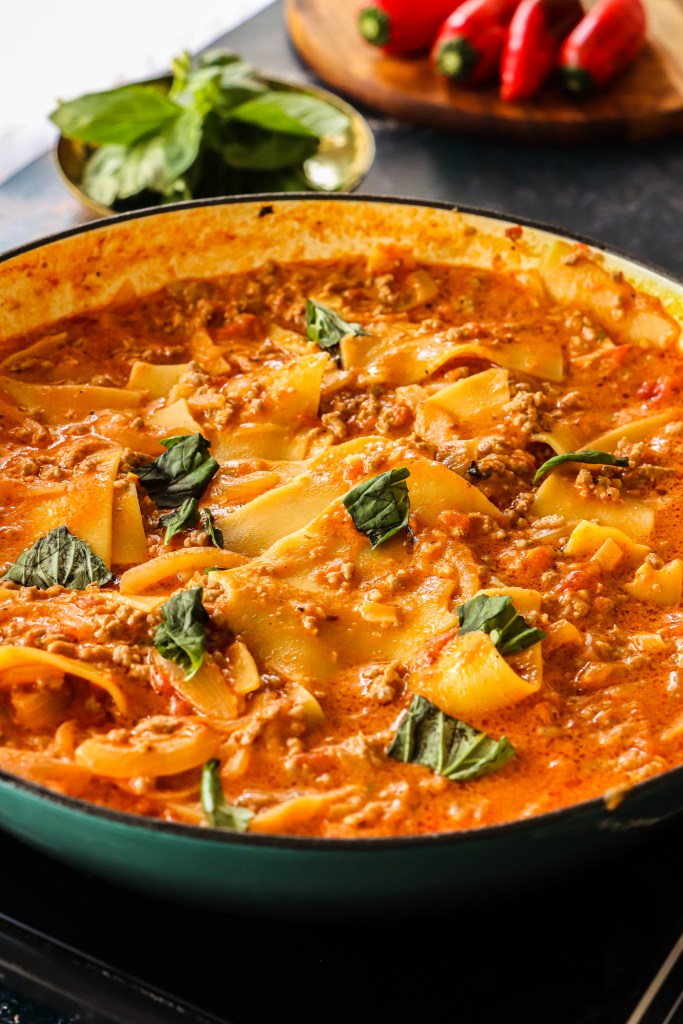 Add the broken lasagne sheets and cook until tender, 15 minutes.