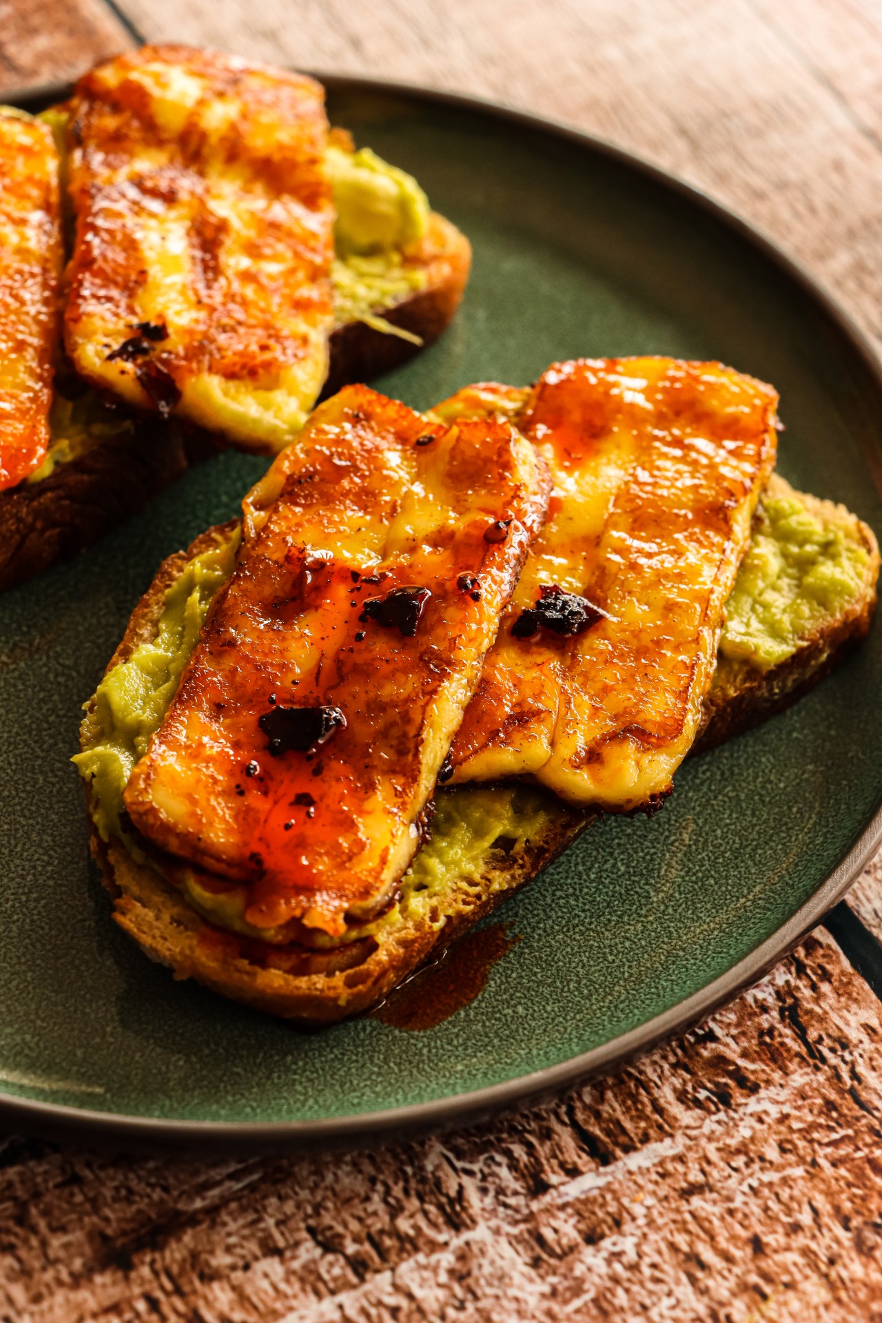 Mash equal amounts of avocado over each slice of toast, top with the fried honey haloumi, drizzle with extra hot honey and serve immediately. Enjoy!