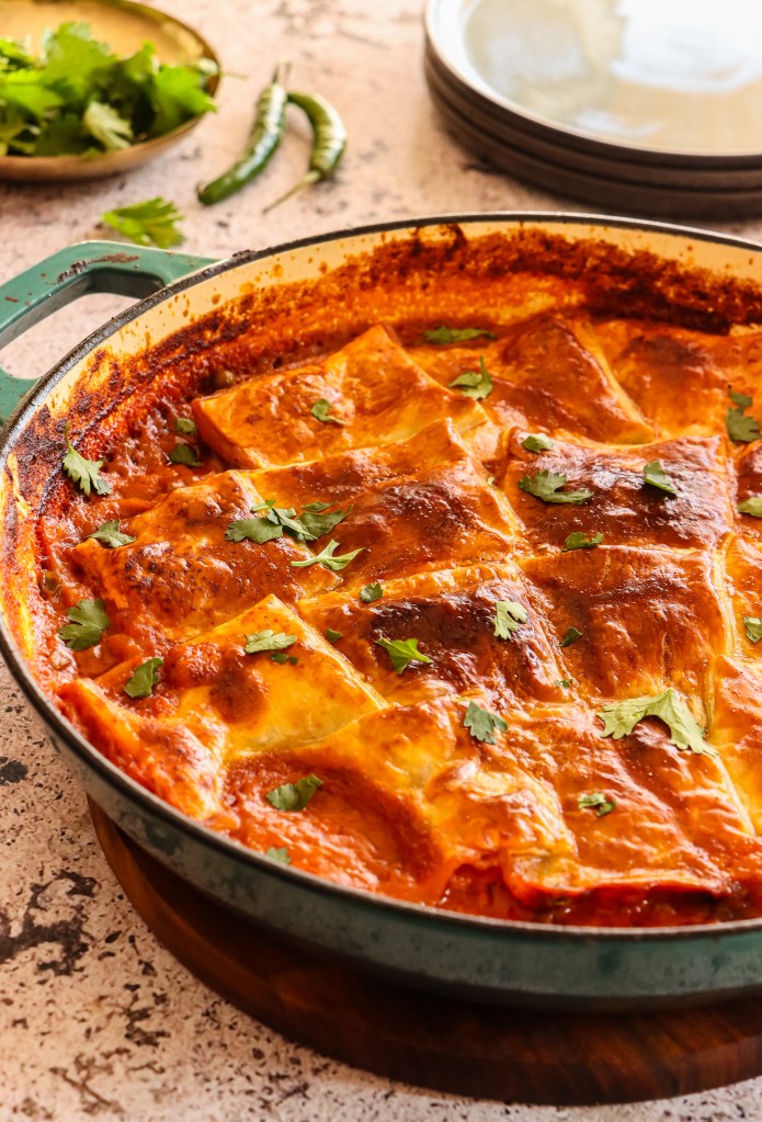 Add the cumin, coriander, turmeric, and chilli powders. Fry for a minute and add a splash of water making sure it doesn’t stick to the bottom of the pan.