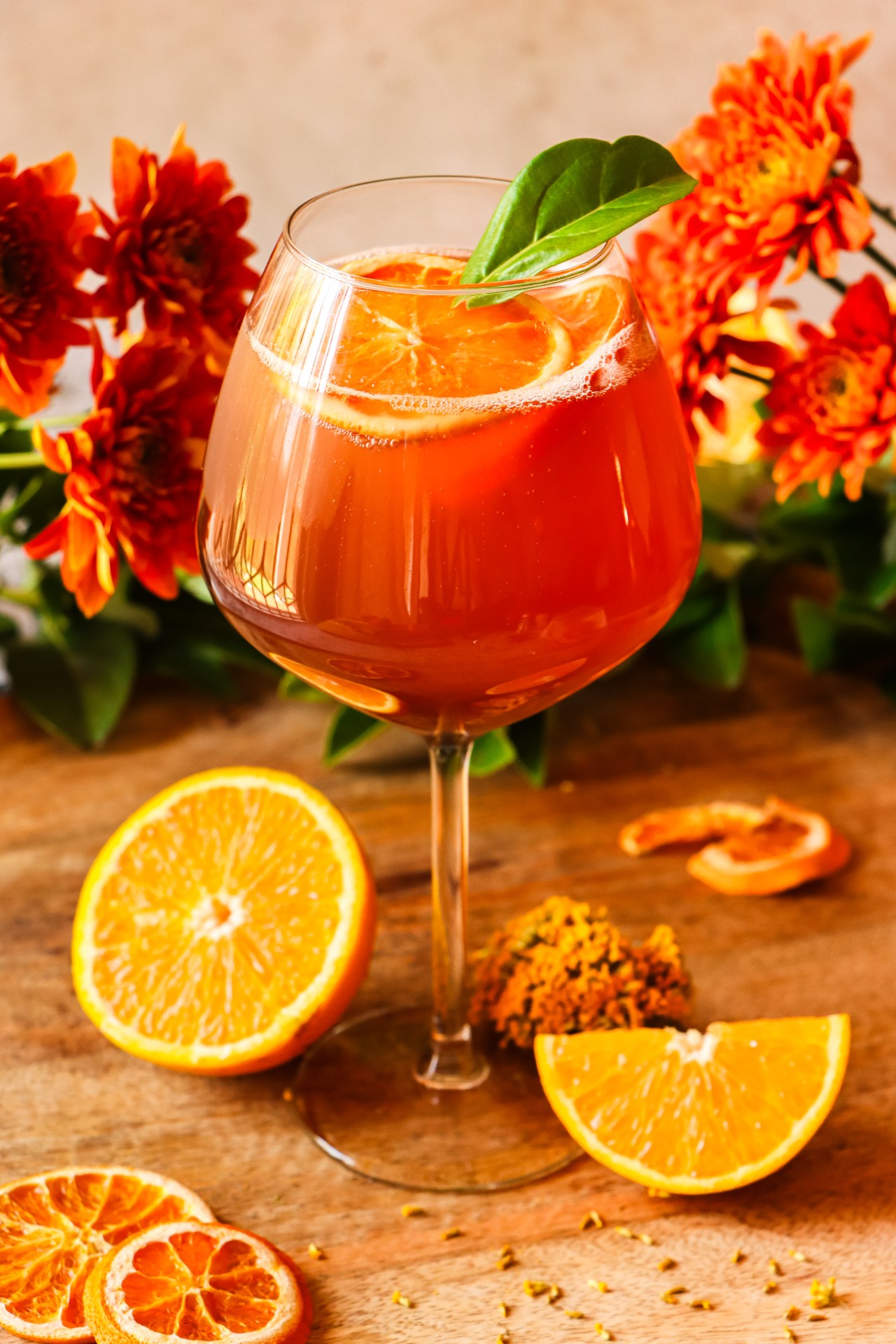 Add gin, rooibos cordial, fresh orange juice, and ice to a shaker. Strain into a chilled glass. Top up with tonic water, and garnish with dried orange slices.